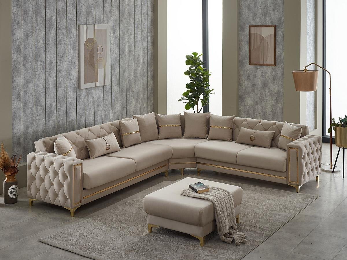 Canapé d’angle Olivya beige doré